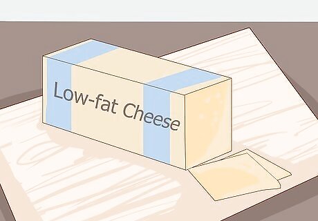 Cut back on cheese. Cheese is one of the most commonly consumed sources of saturated fat, and is high in sodium and calories as well. When a recipe calls for cheese, use a low-fat version. Look for cheeses with less than 3 grams of fat per serving. If you do use full-fat cheese, use less of it than the recipe calls for. Often, half the cheese called for will usually be sufficient. Sharp cheddar and parmesan are generally decent options. You can also get away with using less of these cheeses more easily, since they are stronger in flavor. When a recipe calls for cream cheese, use fat-free cream cheese blended in a one-to-one ratio with plain Greek yogurt. This is especially preferable for dips.
