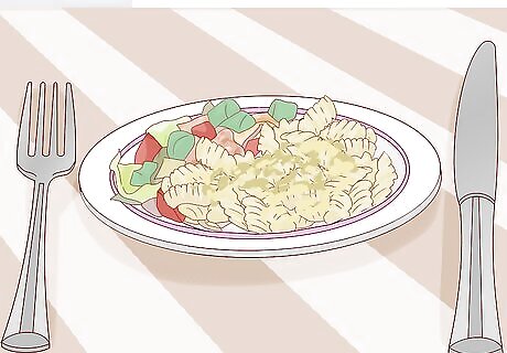 Eat smaller portions. When you do indulge in a comfort food of questionable nutritional value, get in the habit of eating smaller amounts. One way to do so is by eating mindfully. Sit down to eat, and focus only on your food. In fact, focus on each bite. Consider how each mouthful tastes and feels. Since this practice itself will calm you down, you’ll feel content more quickly.