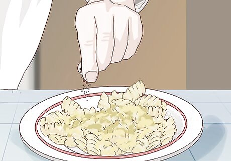 Make homemade mac & cheese. You can reduce the amount of fat and sodium in this classic comfort dish by adjusting of few of its main ingredients. Namely, use 1% milk instead of cream or whole milk, reduce the amount of butter you usually include, and replace some of the cheese with corn starch. Further, use a sharp cheddar cheese, as this will contain less fat. Opt for whole grain noodles, and make the dish especially flavorful by adding your favorites herbs and spices. Basil and turmeric are especially good seasoning options. For another great alternative to classic mac and cheese, add two tablespoons of parmesan cheese to a cup of tomato sauce and mix this with the macaroni noodles. This dish will contain much less fat.