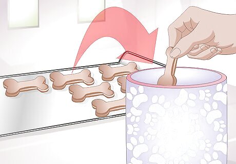Remove the cookies from the oven. They will be hard and crunchy, just the way dogs like them. Let the cookies cool and store them in an air-tight container.