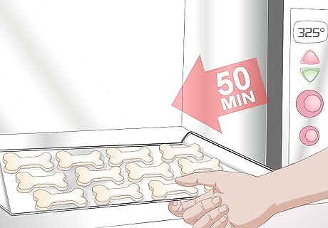 Bake the cookies. Place the cookie sheet in the oven and bake the cookies for 50 minutes. Check them periodically to make sure they don't burn. If the cookies seem to be turning brown quickly, reduce the oven temperature to 300 degrees. If the cookies don't seem to be baking fast enough, increase the oven temperature to 350 degrees.
