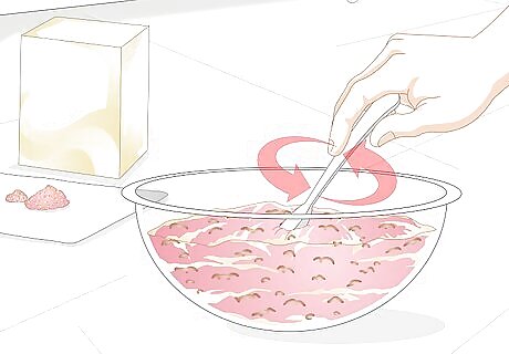 Mix the ingredients. Place the ground meat, wheat germ, and powdered milk in a bowl. Use a spoon to fully incorporate the ingredients until you have a firm meaty dough. If the dough seems too loose, add 1/2 cup of flour and mix well. If you know your dog likes certain flavors, consider mixing them in. Use chunks of vegetables your dog likes, or add bits of bacon for an extra punch.