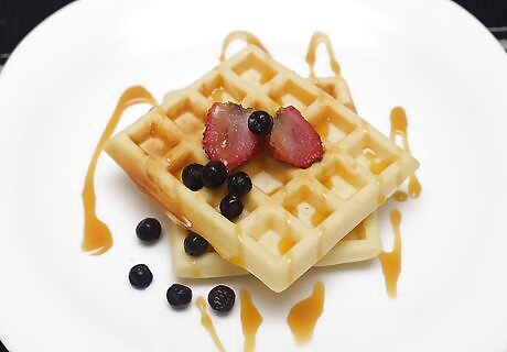Add topping and sides to your waffles, if desired. Add some fruit (strawberries, blueberries, bananas, etc) for extra taste. Apply sugar-free syrup.