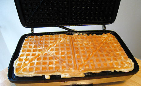 Use a spatula to remove the waffle from the iron. Avoid using your hands or metal due to heat from the iron.