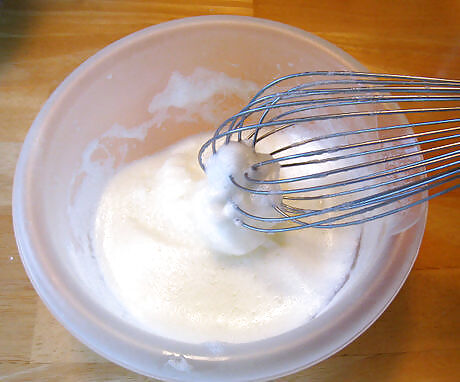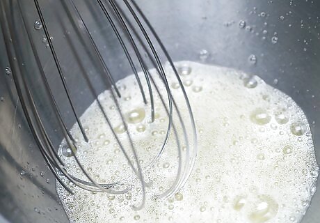 Whip the egg whites in a bowl. Use a whisk, hand mixer or large spoon until egg whites appear fluffy.