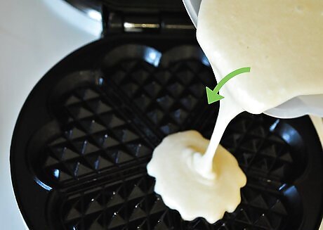 Pour the batter slowly onto the greased waffle iron.