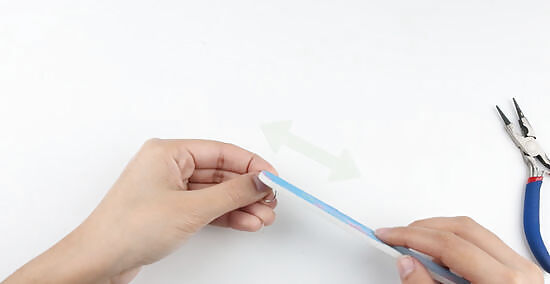 Bend the metal into a hoop with a pair of pliers. Use a pair of pliers to gently bend the ring. Take your time as you do this or you may break the stud. Patiently bend the ring until you have a hoop. If you’re using metal wire, it won’t take as much effort to create hoop, but you should still be careful during the process to avoid breakage.