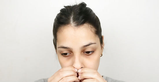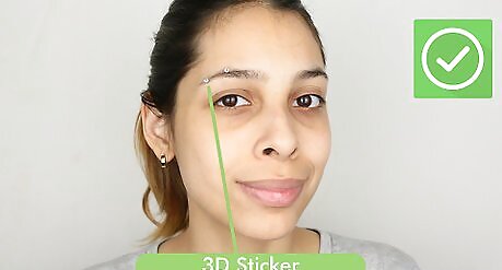 Apply a 3-D sticker around your eyebrow. If you don’t want a hoop, you can use 3-D sticker as “studs.” Use two 3-D stickers in the color of your choice. Apply one sticker just above the middle to end of your eyebrows. Then, apply another sticker directly below on the other side of your eyebrow. A 3-D sticker can also be used as a nose ring.
