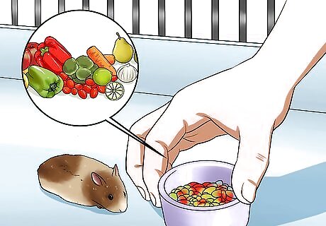 Add additional fruit and vegetables. A healthy store-bought mix is great for a hamster's wellbeing. However, hamster's need fresh fruits and vegetables in addition to their regular food. Non-starchy root vegetables and leafy greens are great for your hamster. Try carrots, squash, broccoli, cauliflower, cucumber, lettuce, and spinach. Always wash any produce before serving it to your hamster. In terms of fruit, go for apples, pears, bananas, and berries. Provide your hamster only small servings of fruit. Never give a hamster citrus fruit, like lemons or oranges. They can be toxic to hamsters.