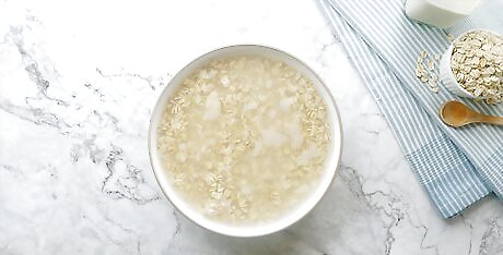 Place the oatmeal in a big bowl then add your water. Let the oatmeal sit for 30 minutes or leave it overnight.