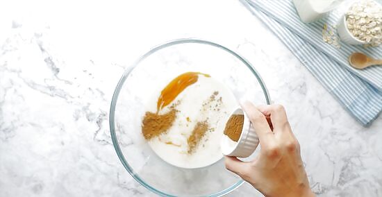 Whisk in the vanilla extract, agave, and cinnamon. This step is optional but it adds flavour to the milk so it's not bland.
