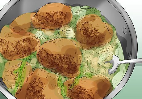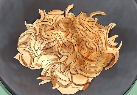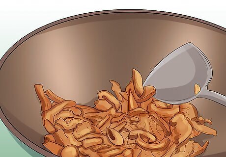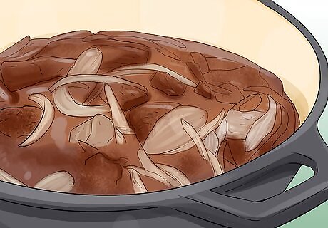 Mix in the mushrooms and cook until tender. Once the onions have browned lightly, add 3 cups (225 g) of sliced cremini mushrooms to the pot. Saute the mushrooms until they are tender, which should take 3 to 5 minutes. You can substitute white or shiitake mushrooms for the cremini if you prefer.