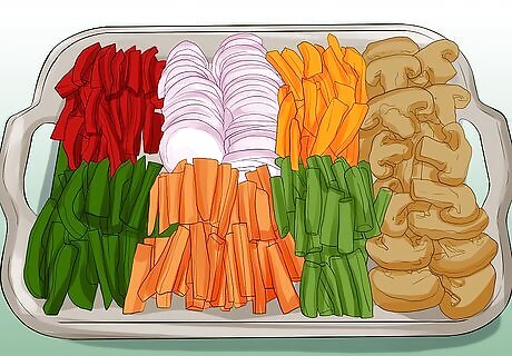 Cut all the ingredients to the same size. Food is more likely to cook at the same rate if the pieces are the same size. When you chop up your vegetables or cut your meat into pieces, try to keep them an uniform size so their cooking times are similar. The smaller that you cut the ingredients, the shorter that the cooking time will be. It may take a little longer to prep the food for cooking, but you won't have to stand over the pot as long.