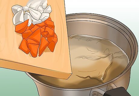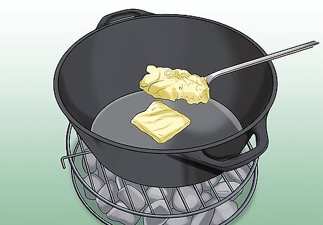 Heat the oil and butter until the butter melts. Place a large pot on your camping stove. Add 1 tablespoon (15 ml) of olive oil and 1 tablespoon (14 g) butter, and heat them on medium until the butter melts completely, which should take approximately 3 minutes. You can use a Dutch oven for the recipe if you prefer. If you prefer, you can use all olive oil or all butter for the dish. However, the combination usually provides the best flavor.