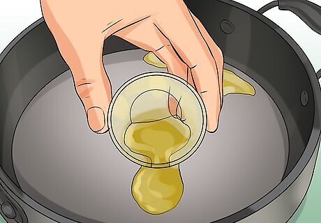 Heat the oil in the skillet. Place a skillet on your camping stove, and add 2 tablespoons (30 ml) of vegetable oil. Allow the oil to heat on medium until it begins to shimmer, which should take 3 to 5 minutes. You can substitute olive oil or butter for the vegetable oil if you prefer.