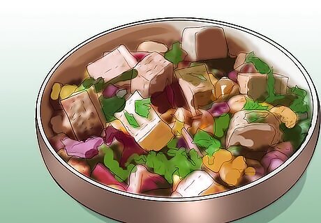 Consider the cooking time for individual ingredients. The key to pulling off a one pot meal is knowing when to add each ingredient so it cooks properly. Some foods, such as large cuts of meat, root vegetables, or brown rice, take longer to cook, which means they should be added to the pot first. Ingredients that cook quickly should be added last. Cutting meat into small pieces can help it cook more quickly. Root vegetables include carrots, onion, garlic, parsnips, and turnips. Tender greens, such as spinach or arugula, cook quickly so they can be added near the end. Herb and spices can be added near the end of the cooking process.