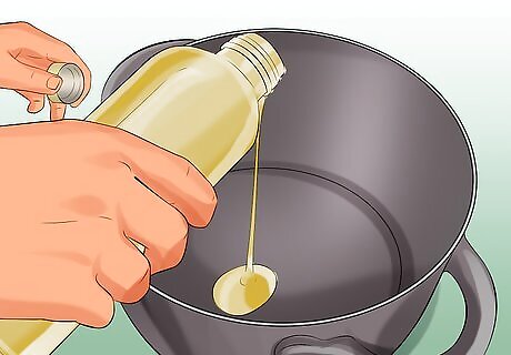 Heat the olive oil in the pot. Place a large pot on your camping stove, and add 1 tablespoon (15 ml) of olive oil. Allow the oil to heat on medium-high until it begins to shimmer, which should take approximately 3 to 5 minutes.
