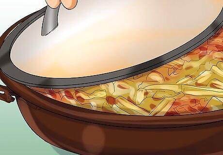 Cover the pot and allow it to come to a boil. Once the ingredients are mixed, place the lid on the pot. Allow the mixture to come to a boil, which should take 10 to 15 minutes.
