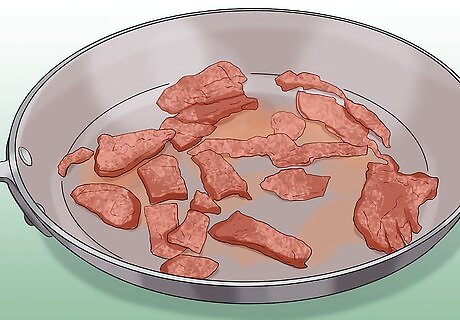 Toss the beef in the flour. Add 1 pound (454 g) of beef sirloin that’s been cut into thin strips to a large bowl. Sprinkle 2 tablespoons (16 g) of all-purpose flour over the meat, and toss the two together until the beef is well coated.