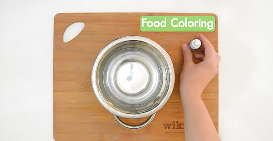 Add a few drops of food coloring to the boiling water. Use traditional liquid or gel food coloring or a natural alternative, in whatever colors you like. Remember that a couple drops go a long way. You can add more later if needed. If you want playdough in several different colors, split your dough into however many containers as colors you want, and do the same with the water after it has boiled before adding color to each one. You can make your own dyes with fruits and vegetables by juicing them or boiling them in water. Raspberries, pure pomegranate juice, or roasted beets can be used to make red. For yellow, try raw carrots or mangoes. For blue, use radicchio or red cabbage.