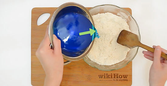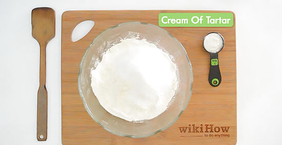 Mix the dry ingredients. Stir the flour, salt, and cream of tartar together with a whisk or wooden spoon.
