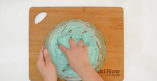 Knead the dough. Once it has cooled, take your playdough out of the bowl and knead it with your hands for a couple of minutes. Kneading the dough thoroughly is what makes it the right consistency, so keep at it until the dough is no longer sticky.