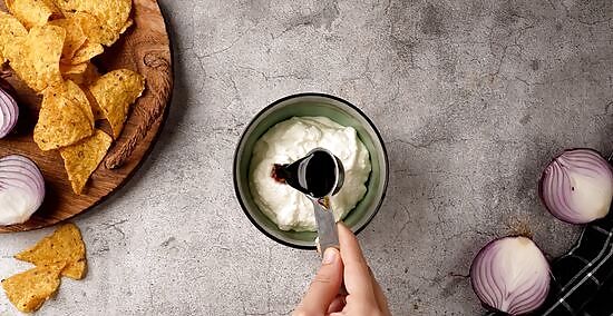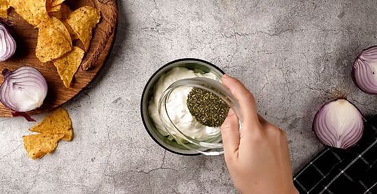 Flavor with chives instead. First, chop up 1.5 cups (72 g) of fresh chives. Then, in a mixing bowl, mix these with 16 ounces (454 g) of sour cream, 4 tablespoons of lemon juice, and 3/4 teaspoon of salt. Once they’re mixed up, it’s ready to eat.