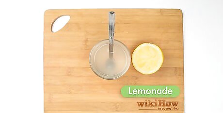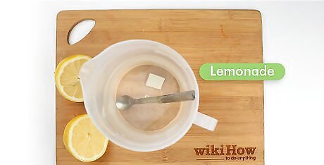 Make lemonade. You can fresh-squeeze the lemonade from real lemons, or us a packet. The idea is for it to be regular lemonade, so use your favorite way of making lemonade for the base.