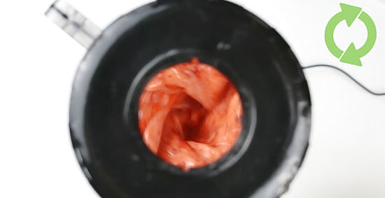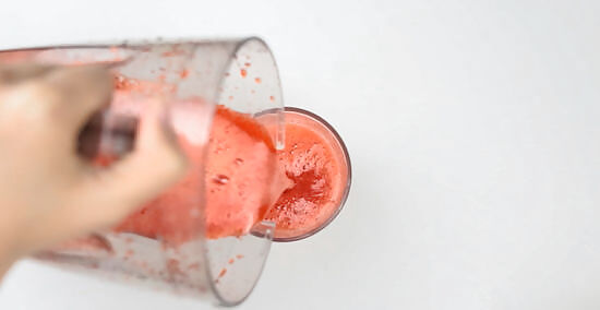 Blend the strawberries into the lemonade. Mix until the composition is smooth and thoroughly blended.