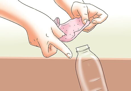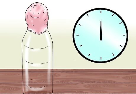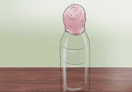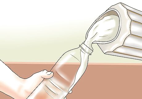 Stretch the balloon over the top of the bottle.