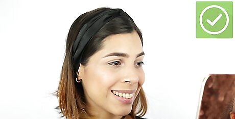 Conceal dark circles under your eyes. If you have dark, tired looking circles or bags under your eyes, it will distract from the shimmery glow of your cheeks. Apply a concealer underneath your eyes using a concealer brush, sponge, or your fingertips. Pat gently to blend the product in thoroughly. Once you’ve covered the area, set your entire face with a pressed powder.