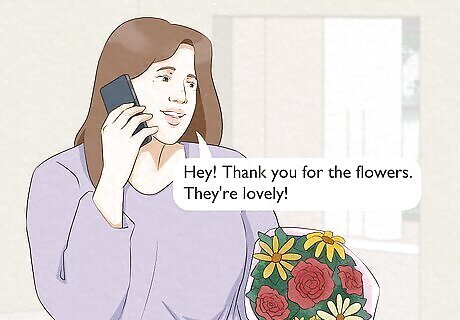 Be spontaneous to keep the romance alive. The mere fact that you went out of your way to arrange a surprise date is often enough. Your date doesn't have to be elaborate. Tell her to meet you somewhere or pick her up yourself. Pretend you're doing something boring, like chores, and then surprise her with the date—like a movie, a cooking class, or a picnic somewhere remote. She might jump into your arms or look you lovingly in the eyes. Before your date, find out what her favorite flowers are and send her a bouquet. One good place to figure out what flowers she likes is at the grocery store. When you’re there together, ask her casually what kind of flowers look good, and then take note. Remember that different flowers symbolize different things. For example, while red roses mean love and romance, white roses mean friendship.
