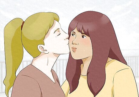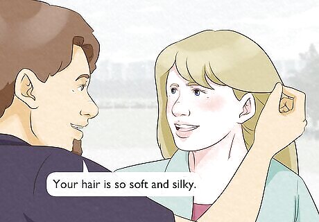 Give her little touches. When she's not expecting it, wrap your arm around her, squeeze her gently, kiss her cheek, neck, or forehead, and tell her something heartfelt about how she makes you feel. Look her in the eyes and give her a sweet smile.