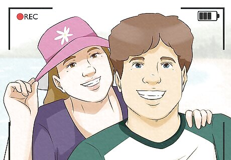 Kiss her cheek or hold her hand when you are out and about. Don’t save affection for only private moments; show the rest of the world how you feel about her. She'll realize she makes you like the luckiest person in the world, which you are! Place a hand on the small of her back, squeeze her shoulders, or hold her close when introducing her to one of your friends. If she uses social media a lot, feel free to post photos together on social media. Post photos of the two of you, tag her at places, and change your relationship status. Show her you are publicly committed to the relationship and that you are proud to show her off. However, if she is a very private person, this may make her uncomfortable, so ask first. Don't be afraid to introduce her as your girlfriend if she is. She might be a little put off if you just introduce her using her name. If you haven't made it clear whether you two are boyfriend and girlfriend, stick to introducing her by name. Don't let go of her hand when another person walks by. It could give off the impression that you’re embarrassed to be with her, or that you're interested in someone else. If you're holding hands, wait for a good moment to break contact.