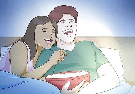 Small gestures are just as important as big ones. Going the extra mile doesn't have to mean some grand, romantic gesture we see in the movies or hear about in stories. Often, the really small things mean just as much, provided you do them with feeling. Sing romantic songs to her, even if your voice is horrible. Have a song that's yours. Even if you butcher it, the singing can be an opportunity for both of you to laugh. It's sure to be a win-win situation regardless! Find ways to send or leave little notes and symbols of endearment that will remind her of fun times you have shared together. A simple, handwritten note goes a long way. Clinical psychologist and life coach Susan Pazak says, “Choosing behaviors that create laughter or tears is especially bonding…Watch a movie and talk about it afterwards. Dance, sing, do a project together, volunteer for a common interest cause, watch a sports game.”