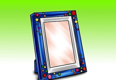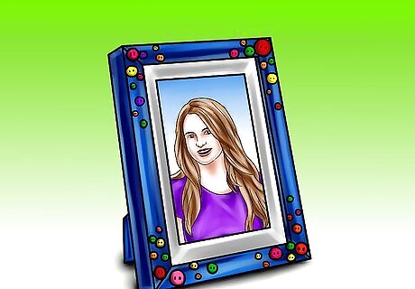 Decorate a picture frame. Buy an inexpensive picture frame and personalize it for the recipient. Use dimensional fabric paint to create your own unique designs. Gather together or buy plastic Barbie® doll accessories, beads, jigsaw puzzle pieces, and other knick-knacks that symbolize the interests of the recipient. For example, for a sports enthusiast, you could use plastic Barbie doll tennis shoes, plastic toy baseballs and/or popcorn from a doll house set. Find a jigsaw puzzle with pictures of footballs or soccer on it and use those pieces or get some sports-themed scrapbooking or card-making accessories from the craft store. Use hot glue and/or glue dots to glue the items on the frame. You can leave it as is or use some spray paint to color the whole thing, items and all in silver, gold or another color. Put a special poem or message in the frame and you've got a show-stopping gift without an extravagant price tag.