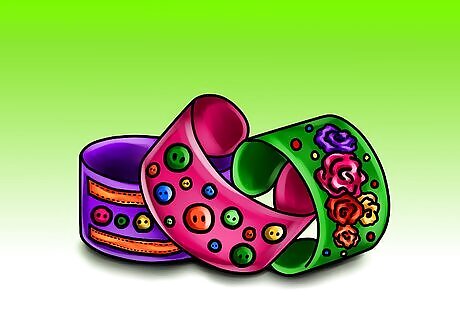 Make a bracelet from plastic bottles. Get a water bottle and cut around it to make a bangle. Glue thick ribbon on the inside. Glue a map to the outside of the bangle, get some Mod Podge and put 3 to 5 layers over it every 20 minutes, letting it dry between layers.