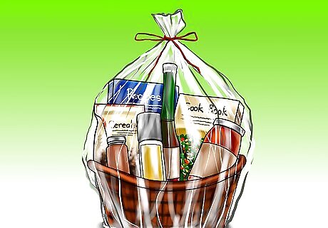 Make a themed gift basket for newlyweds, college students, or new home owners you can create a gift basket with several inexpensive items from discount stores. Theme the basket for the kitchen, bath, or dorm room. Avoid a color scheme unless you know what they want.