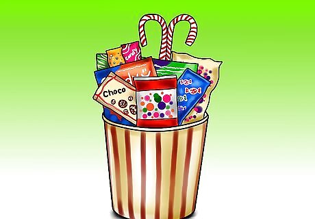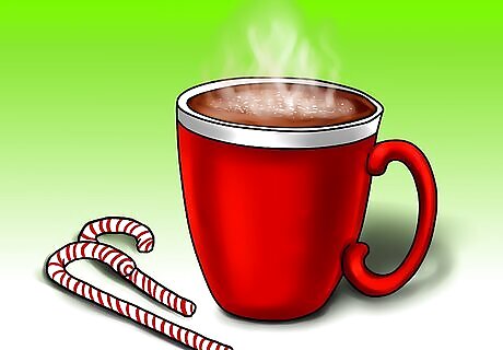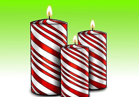 Make a peppermint candle. Buy a large plain white unscented pillar candle and peppermint candies (round or stick). Unwrap the candies. Using a hot glue gun or glue dots (found at craft stores), glue candies all around the sides of the candle. It will look like candles sold for $15 and more in catalogs and fancy stores. You can even make your own scented candles