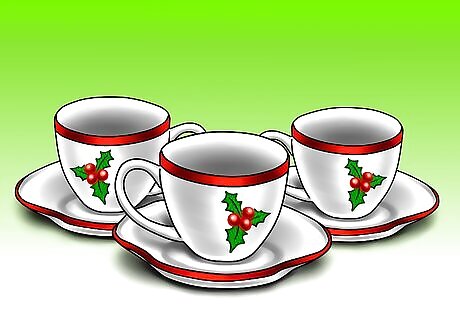 Throw them a tea party. Shop thrift stores, antique stores, pottery outlets, yard sales or your own cabinet for cute tea cups and saucers. Add several gourmet tea bags, individually packaged tea bags and tasty biscuits from the dollar store. Wrap with cellophane and top with a holiday bow. (Hint: add a drop of rubber cement or piece of tape to attach the saucer to the cup to prevent from slipping or breaking.) This is a great way to get rid of old china. You can also do that for the coffee lover and include a gift card for gourmet coffee beans at a local or online store.