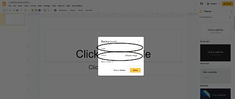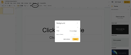 Look for the small box that says 'Background' right above your slide in the menu. Click on it.