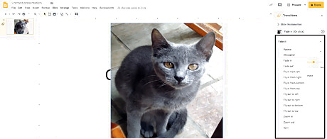 Click the box that says Fade In. Choose what you want to happen to the picture such as spinning, flying in from the bottom, etc.