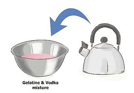 Add the boiling water to dissolve the gelatin. While the gelatin blooms, bring the water to a boil in a kettle, or in a saucepan on the stove. When the water is ready and the gelatin has had time to soften, add the boiling water to the bowl with the vodka and gelatin mixture. Stir the mixture with a spoon until the gelatin is dissolved.