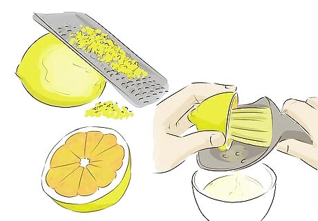 Zest and juice the lemon. Wash the lemon under running water and scrub the rind with a vegetable brush. Use a small cheese grater or zester to remove the zest from the lemon. When you have the zest you need, cut the lemon in half. Use a citrus reamer or squeeze the lemon hard to remove the juice. Transfer the juice and zest to a small saucepan.