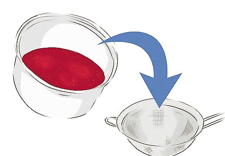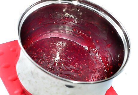 Strain the mixture. Remove the mixture from the heat after 20 minutes. Pour the raspberry filling into a fine-mesh strainer, and use a spoon to stir the mixture and push it through the strainer. This will remove seeds and clumps from the filling, making it smooth and delicious.
