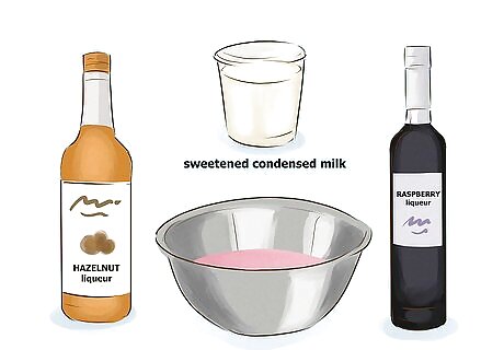 Add the alcohol and condensed milk. When the gelatin is dissolved, pour the hazelnut liqueur, raspberry liqueur, and sweetened condensed milk into the bowl with the gelatin mixture. Stir well to completely incorporate all of the ingredients. To make the jello shots non-alcoholic, replace the vodka and liqueurs with water, juice, or milk.