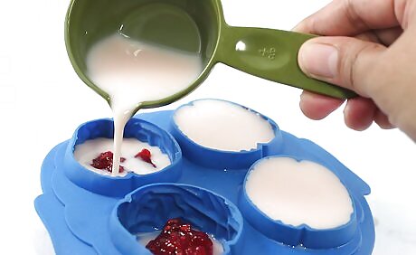 Fill the molds and let the jello set overnight. When the filling has been added, top up each mold the rest of the way with the remaining jello. Cover the molds with a piece of plastic wrap and transfer them to the refrigerator. Let the jello set overnight, or for at least four hours.
