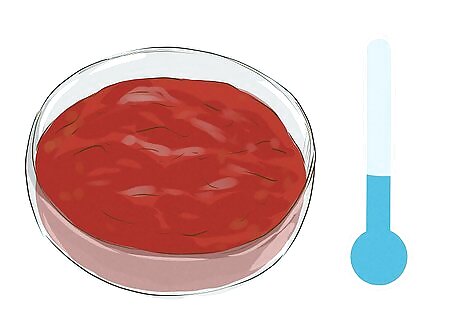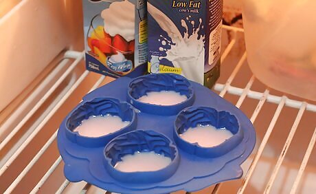 Refrigerate the jello to set it. Transfer the half-filled brain molds to the refrigerator and let the jello set for about 30 minutes. You want the jello firm, but not completely set. Don’t wait any longer than an hour, or the second layer of jello may not adhere properly to the first layer. While you're waiting for the jello to firm up, cover the remaining jello with a sheet of plastic wrap and leave it on the counter.
