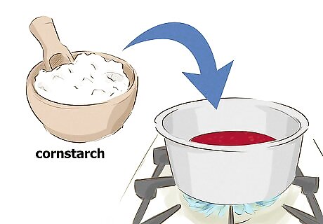 Add the cornstarch and reheat the filling. Return the filling to the saucepan and turn the heat to medium. In a small bowl, whisk together the cornstarch and water until the cornstarch is fully dissolved. Pour the cornstarch slurry into the pan with the filling and whisk to combine the mixture. Bring the filling to a boil, and let it simmer until thickened, about five minutes.