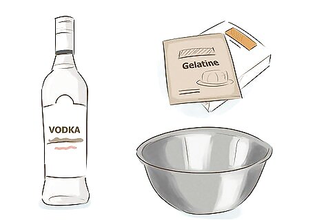 Combine the vodka and gelatin. Pour the vodka into a large mixing bowl. Open the envelopes of gelatin and sprinkle the gelatin over the vodka. Set it aside for about five minutes. This will give the gelatin time to bloom, or soften. For 7½ teaspoons (22.5 g) of unflavored gelatin, you'll need three envelopes of gelatin.